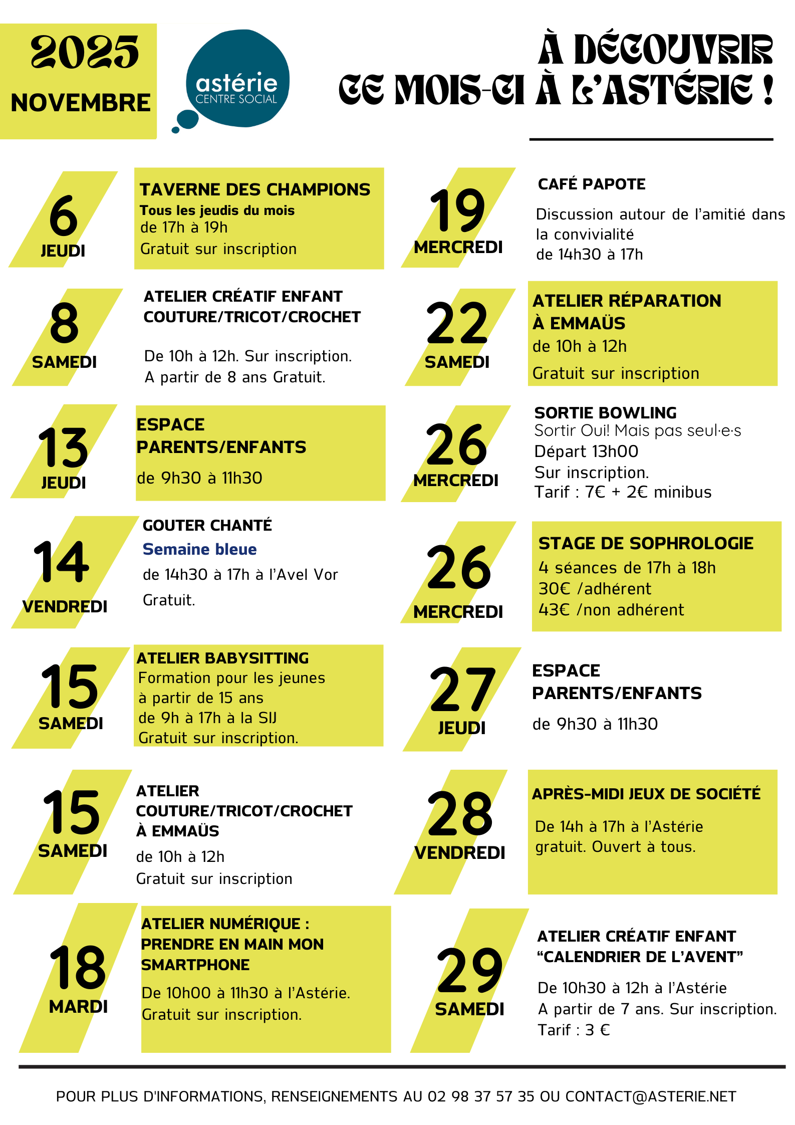 Découvrez l’ensemble des activités de l’Astérie dans la plaquette 2025/2026 disponible en ligne