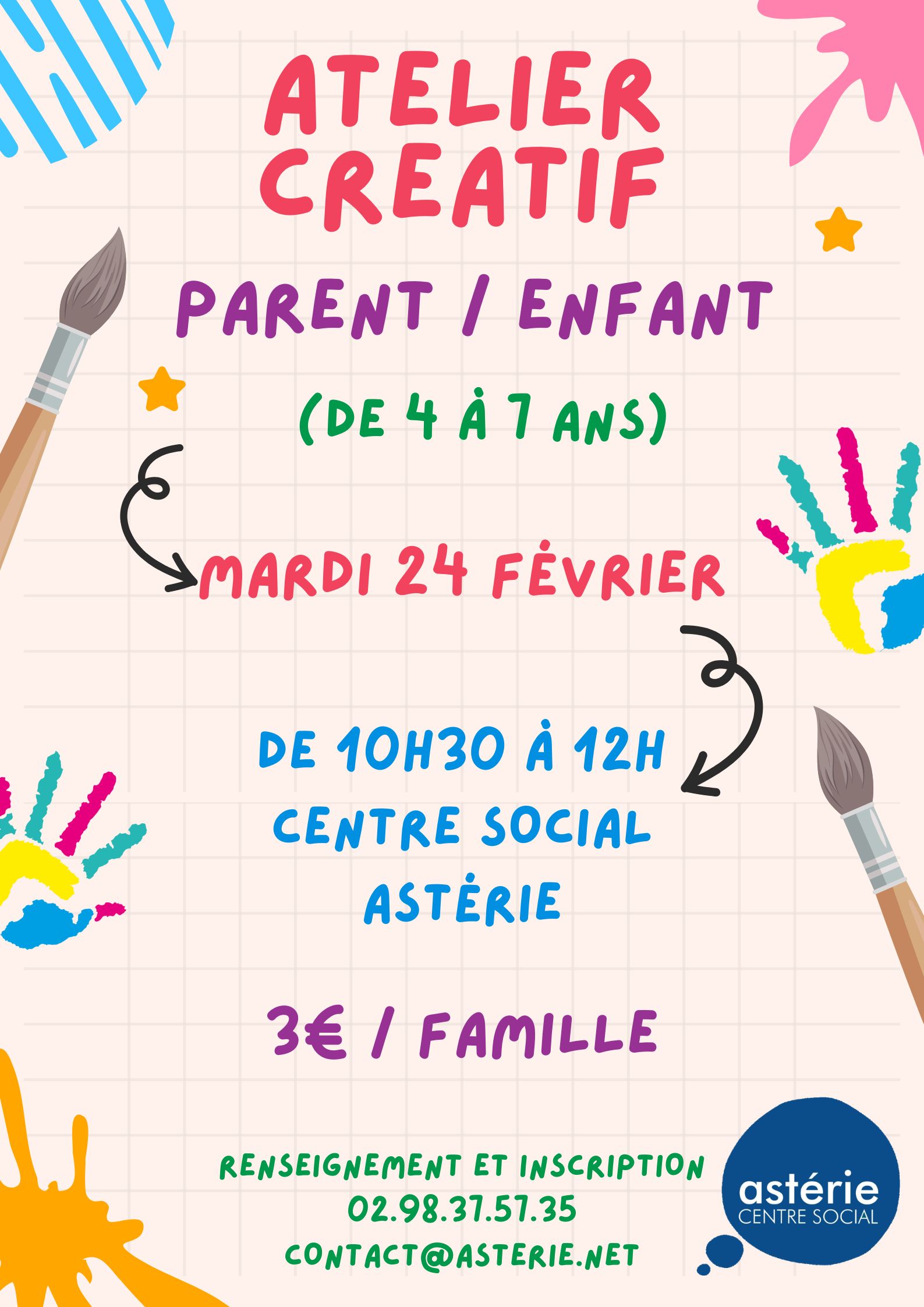 L’animatrice référente famille et une bénévole vous propose un petit atelier créatif entre parent et enfant, grand parent et petit enfant le mardi 24 février de 10h30 à 12h au centre social. Autour de la thématique « nouvel an chinois ». Enfant entre 4 et 7 ans, tarif: 3€/famille